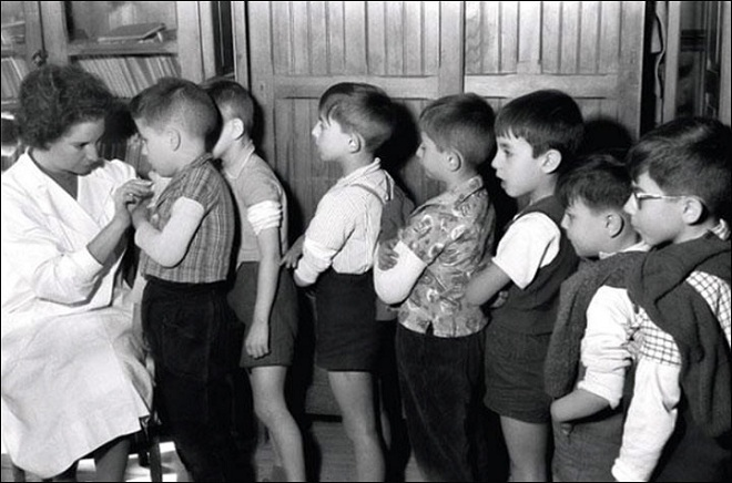 Trẻ em xếp hàng tiêm vắcxin đậu mùa những năm 1960. (Ảnh: 22-91.ru)