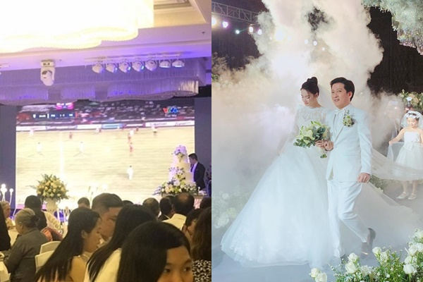 Cô dâu chú rể đầu tư cả một màn hình led để cổ vũ đội tuyển Việt Nam.