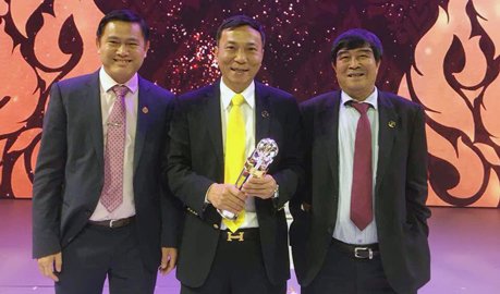 Phó chủ tịch thường trực VFF Trần Quốc Tuấn (giữa), Phó chủ tịch VFF Nguyễn Xuân Gụ (bên phải) và Ủy viên thường trực BCH VFF Trần Anh Tú (bên trái) đại diện LĐBĐ Việt Nam tham dự Gala các giải thưởng của AFC 2017