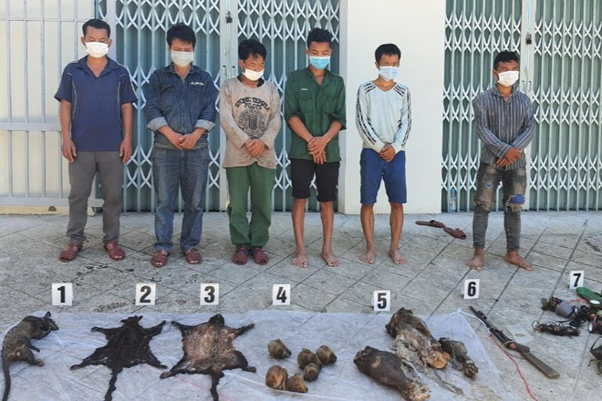 Qua kiểm tra, lực lượng kiểm lâm phát hiện nhóm người này mang theo 1 khẩu súng săn tự chế và xác nhiều loài động vật hoang dã đã chết gồm 2 cá thể chồn bay, 1 cá thể cầy hương, 6 đầu linh trưởng, 3 thân linh trưởng bị chặt toàn bộ chân tay, đang phân hủy.