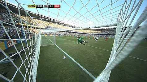 Phút thứ 38, khi tỷ số trận thư hùng Anh và Đức đang là 2-1, tiền vệ Frank Lampard tung ra một cú vuốt bóng cực kỳ đẳng cấp từ bên ngoài vòng cấm. Bóng chạm mép dưới xà ngang, đập đất đi qua vạch vôi cầu môn hơn 2m.