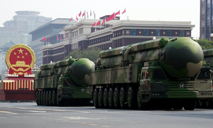 Trung Quốc duy trì "chính sách hạt nhân tối thiểu", nhưng kho vũ khí hạt nhân của nước này lại mở rộng đáng kể với viêc việc đưa vào sử dụng SSBN Type 094 mới, SLBM JL-3 mới, DF-5C, ICBM DF-31AG và DF-41, IRBM có khả năng mang vũ khí hạt nhân DF-21D/26 và tàu lượn siêu thanh DF-17, cũng như máy bay ném bom chiến lược có khả năng mang vũ khí hạt nhân được cải tiến từ nền tảng cũ hơn H-6 series.
