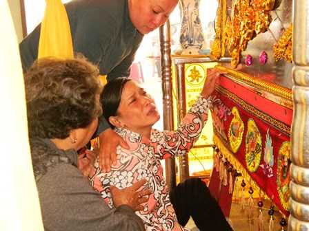 Cũng tột cùng đau đớn, mẹ của Tài ngã quỵ bên quan tài con và khóc thét: "Con ơi! Sao nỡ bỏ bố mẹ và em ra đi lặng lẽ vậy con".