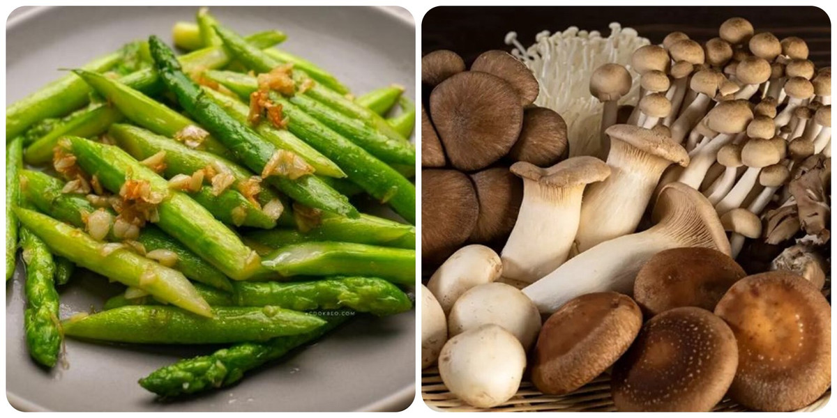 Măng tây và nấm cũng là hai loại rau rất giàu protein