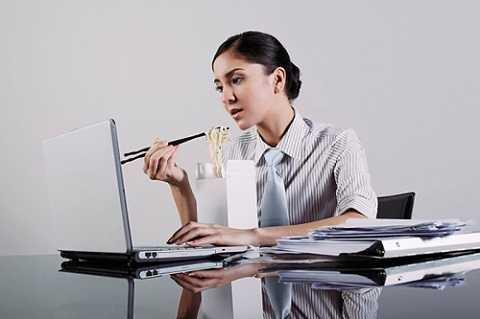 | Vì quá bận rộn hoặc ngại ra ngoài ăn mà không ít người có thói quen ăn trưa tại bàn làm việc. Một cuộc khảo sát gần đây cho thấy 92% nhân viên văn phòng thích ăn trưa tại bàn làm việc. Tuy nhiên, đây là một thói quen không lành mạnh. |