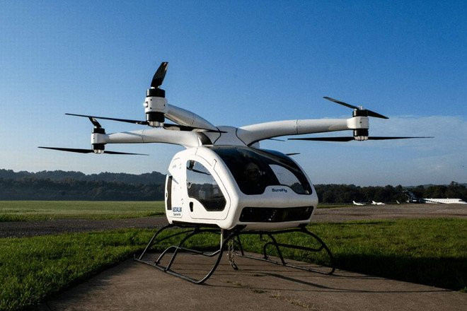 Điểm cộng của chiếc xe bay Workhorse SureFly là thời gian bay kéo dài do động cơ có thể tự sạc lại pin. Nó cũng có cánh gập được, phù hợp để chứa trong garage ô tô thông thường. Sản phẩm thiết kế vừa đủ cho 2 hành khách và dự kiến được bán với giá 200.000 USD.