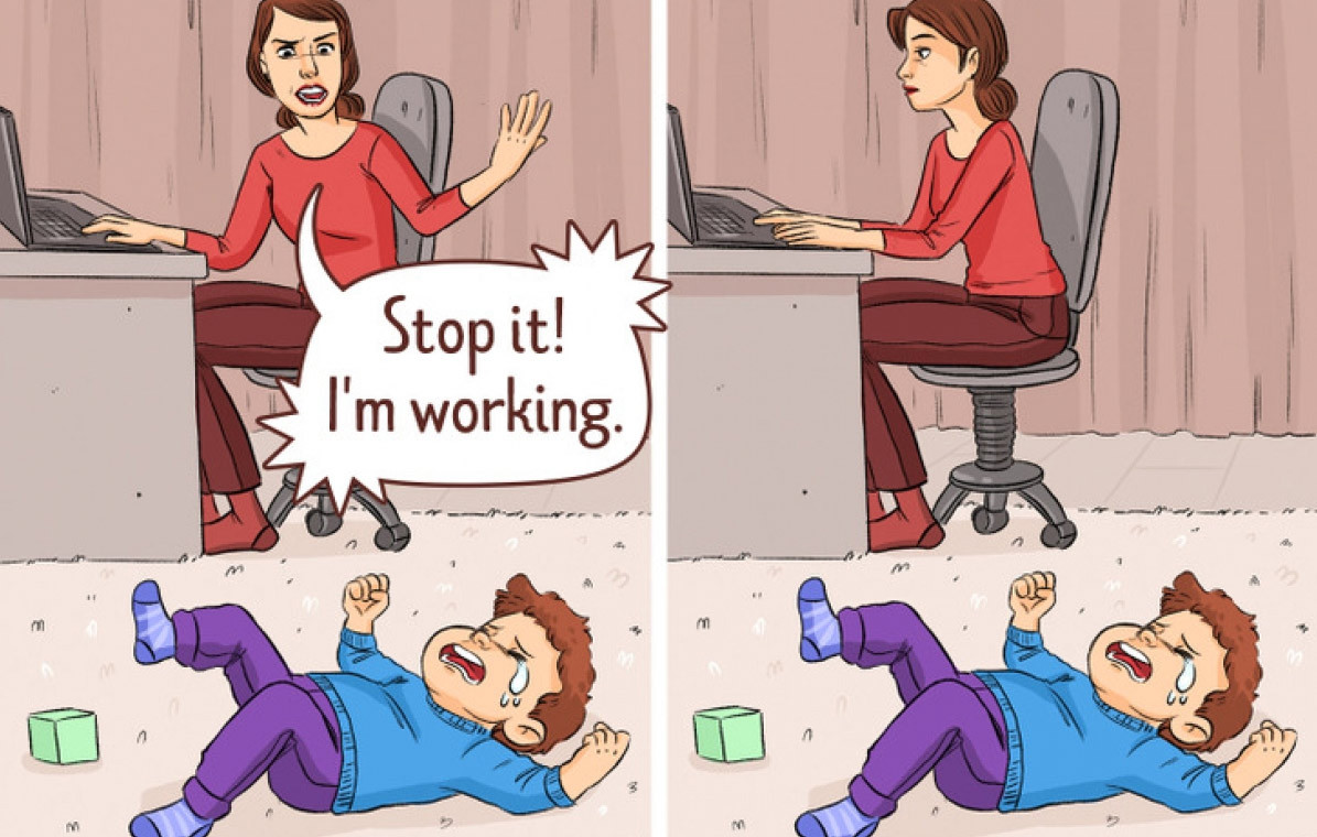 Trẻ em thường có khoảng thời gian chú ý rất ngắn, có nghĩa là những gì khiến chúng khó chịu bây giờ có thể bị quên đi trong vài giây. Vì vậy, nếu trẻ đang "ăn vạ" ở một cửa hàng vì muốn bạn mua thứ gì đó, bạn có thể làm trẻ phân tâm bằng thứ khác. Đưa một đồ vật hoặc một món đồ chơi mà bạn biết chúng sẽ thích, hoặc bạn có thể cho xem một thứ gì đó mà chúng có thể quan tâm trong cửa hàng là điều nên làm. Tốt nhất là bạn không nên so sánh giữa con mình với những đứa trẻ khác.