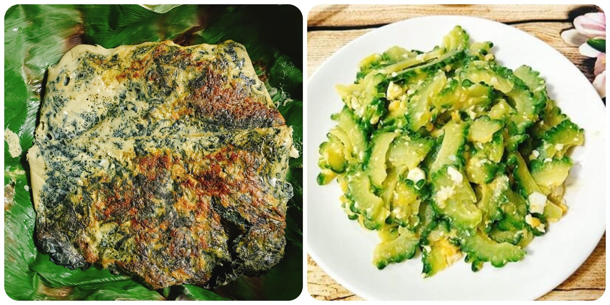 Mướp đắng thái lát xào với trứng gà, hành ngò tác dụng bổ thận kiện tỳ, mát tim, nhuận tràng, chữa nhiệt miệng khô khát, táo bón, tả lỵ, mụn nhọt rôm sẩy, tiểu đường, gout.