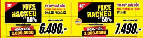 Chưa dừng ở đó, tại tất cả các điểm bán hàng trên toàn quốc của MediaMart sẽ tiếp tục chương trình hoàn tiền đến 5 triệu đồng cho TV LED. Mức giá sau hoàn tiền của một chiếc TV LED 39’ thương hiệu quốc tế chỉ 6.4 triệu, LED 40’’chỉ còn 7.490.000đ…