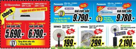 Ngay từ bây giờ, người dùng có thể tham khảo các chủng loại điều hòa đa dạng đang được giảm giá sâu như: Điều hòa một chiều Eletrolux 9000BTU ESMCRD-C1 giảm 700.000đ còn 5.690.000đ, với diện tích phòng lớn hơn, hãy lựa chọn điều hòa 1 chiều Electrolux 12000BTU ESM12CRD-C1 với mức giá chỉ 6.790.000đ hay điều hòa 1 chiều Panasonic C12NKH giảm 1,2 triệu còn 9.790.000đ…