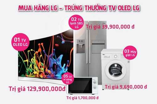 Nhãn hàng LG với chương trình bốc thăm trúng thưởng hàng loạt các giải thưởng các giá trị như Tivi OLED LG, tủ lạnh Side by Side, máy giặt lồng ngang, lò vi sóng LG, tổng giá trị của giải thưởng lên đến gần 250 triệu đồng.