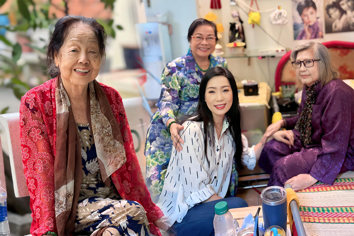 Trịnh Kim Chi bên cạnh các nghệ sỹ ở Viện dưỡng lão.