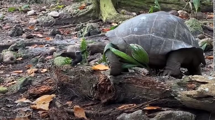 Trong video ghi lại trên quần đảo Seychelles ở Ấn Độ Dương, một con rùa khổng lồ Seychelles vốn được biết đến là loài ăn chay đã tấn công và ăn thịt con chim nhạn non. Các nhà khoa học cho biết đây là bằng chứng được ghi lại lần đầu tiên về việc một con rùa Seychelles ăn thịt loài động vật khác.