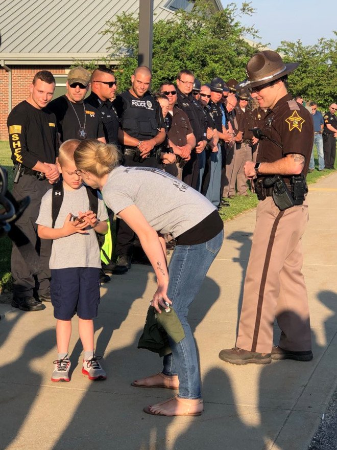 Cậu bé 5 tuổi hỏi mẹ có đồng nghiệp nào của bố có thể lái xe đưa em tới trường Tiểu học Sullivan vào sáng thứ hai (14/5) không. Người mẹ không khỏi xúc động khi nhận được câu trả lời từ 70 cảnh sát trong lực lượng an ninh của bang Indiana, không chỉ riêng đơn vị công tác của Rob.
