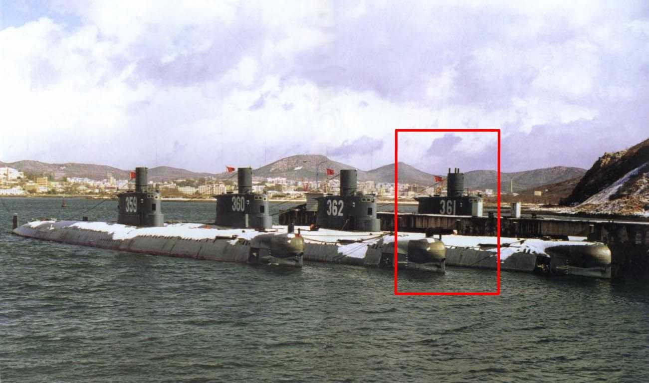 | Tàu ngầm 361 thuộc lớp Ming của Trung Quốc khi ở căn cứ |