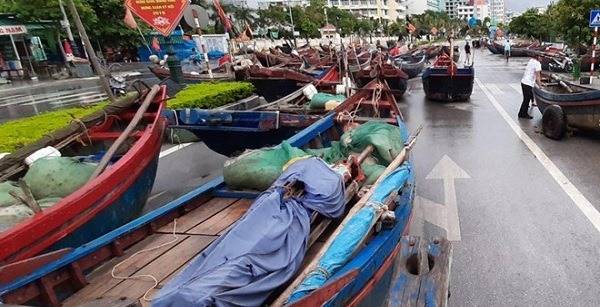 700 chiếc thuyền ở Sầm Sơn lên đường nhựa nằm tránh bão