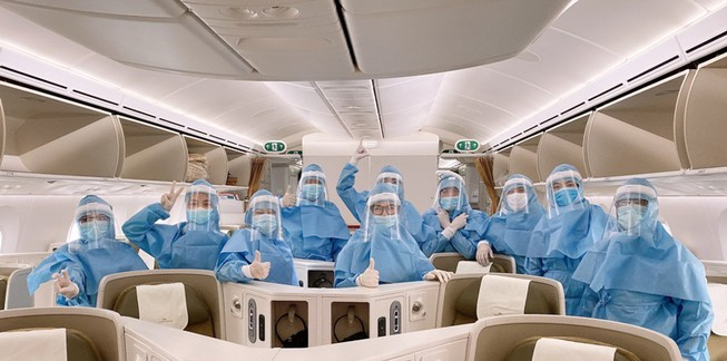 Nữ tiếp viên trưởng của Vietnam Airlines nói thêm, khi xảy ra dịch đoàn tiếp viên đã trang bị đầy đủ khẩu trang, găng tay, nước rửa tay và tập huấn quy trình phục vụ trong tình hình dịch bệnh lây lan nhanh.