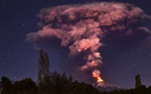 | Núi lửa Villarrica ở Chile phun tro bụi hôm 3/3 |