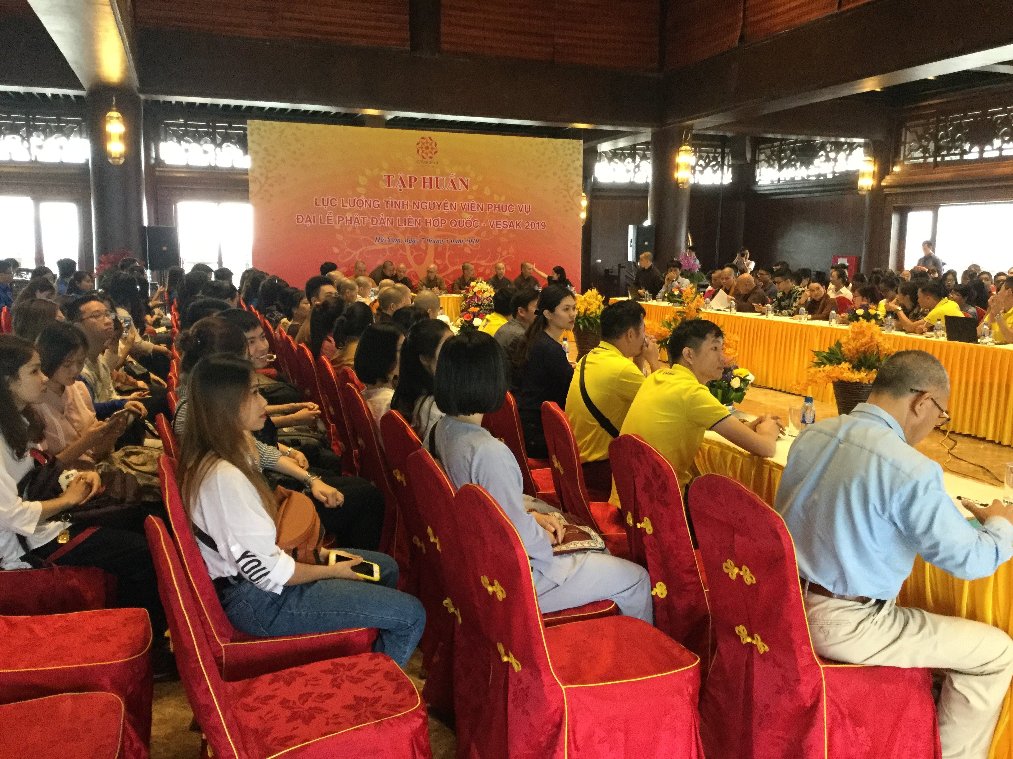 Hôm nay (7/5), sinh viên, thanh niên đã có buổi tập huấn chuẩn bị cho Đại lễ Phật đản Liên hợp quốc - Vesak 2019 sẽ được tổ chức tại Chùa Tam Chúc, Hà Nam vào ngày 12-14/5/2019.
