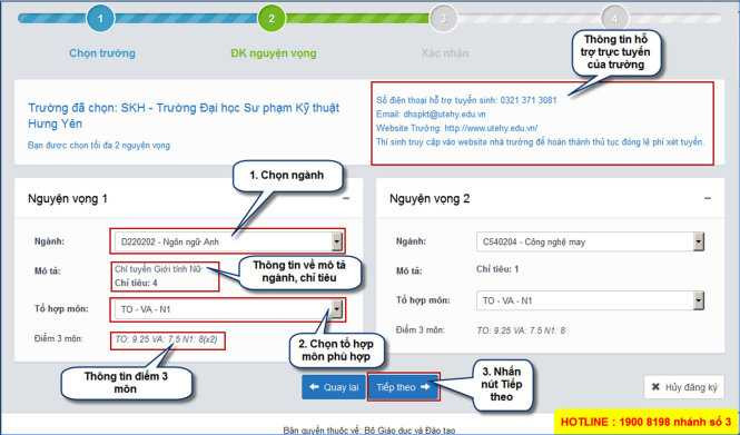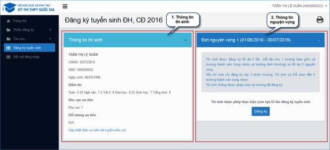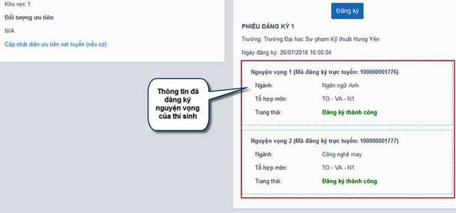 - Sau khi đã đăng ký thành công, thí sinh nên in ra kết quả đăng ký để đối chiếu khi cần.