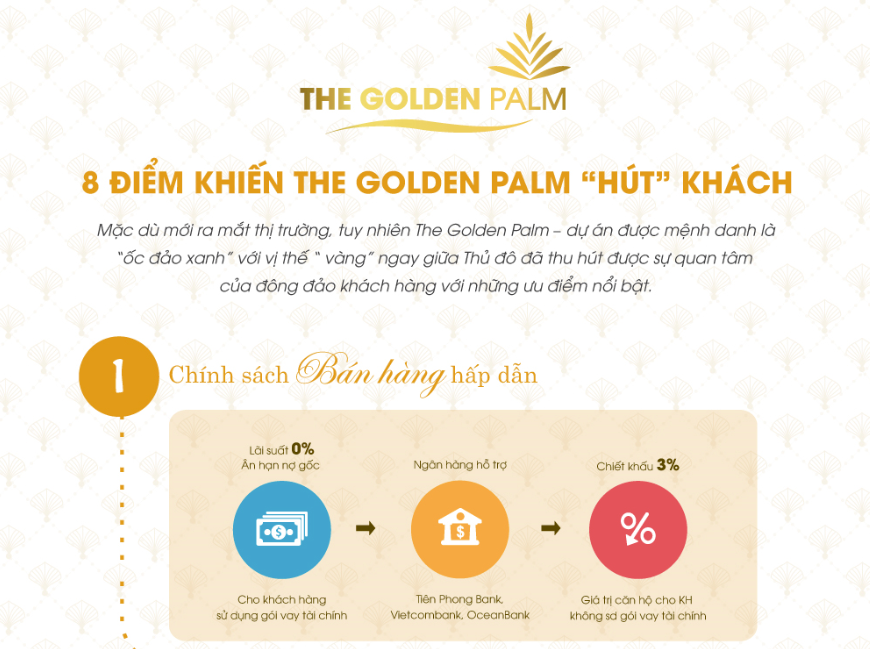 Mặc dù mới ra mắt thị trường, tuy nhiên The Golden Palm – dự án được mệnh danh là “ốc đảo xanh” với vị thế “vàng” ngay giữa trung tâm Thủ đô đã thu hút được sự quan tâm của đông đảo khách hàng với những ưu điểm nổi bật.