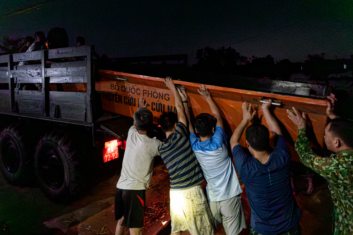 Đến 3h ngày 9/10, chiếc thuyền được kéo đến vùng hạ lưu nhưng nước lũ chảy quá xiết cùng trời tối khiến việc cứu nạn vô cùng khó khăn.