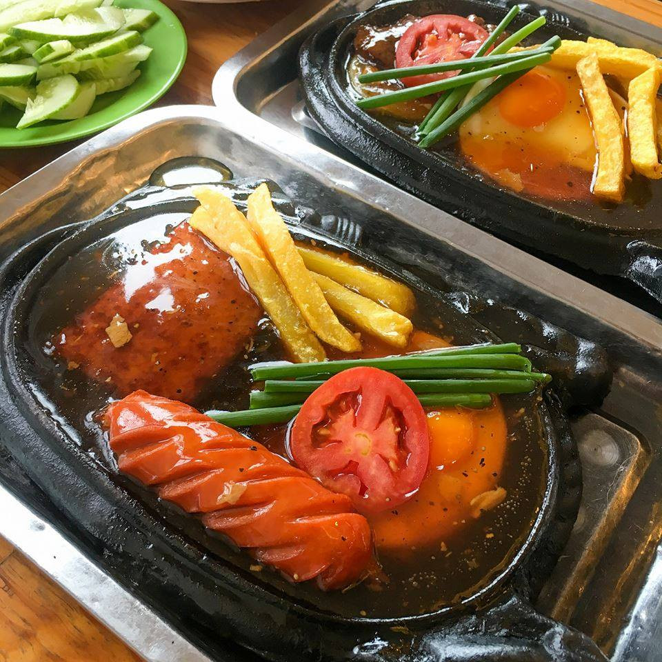 Một chảo bánh mì tại đây bao gồm thịt bò, trứng ốp la, khoai tây chiên và có thể gọi thêm pate. Phần nước sốt tiêu đậm đà, vừa miệng rất hợp với thịt bò.