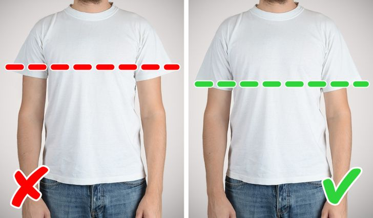 Khi phải chọn độ dài của tay áo phông, nhiều anh chàng có xu hướng chỉ chú ý tới việc nó vừa hay không, hoàn toàn không để ý gì vào tay áo. Trong hầu hết các trường hợp, độ cao của tay áo nên che khoảng một nửa cánh tay trên để đạt tỉ lệ phù hợp. Cách nhanh nhất đó là chú ý đến hình thế, nếu bạn cao, nên chọn chiếc áo tay dài hơn, trông bạn sẽ thời trang hơn.