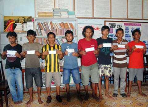 | 8 nghi phạm cướp biển bị bắt tại đảo Thổ Chu (Ảnh do Tư lệnh Hải quân Hoàng gia Malaysia Tan Sri Abdul Aziz Jaafar công bố) (Ảnh: Người lao động) |
