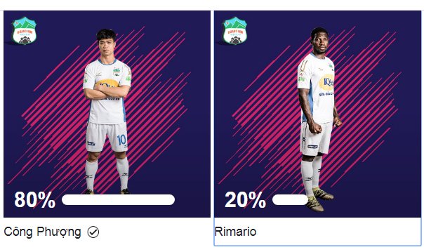 Sau 4 tiếng thăm dò, kết quả, Công Phượng có 80% người được hỏi lựa chọn. Còn tiền đạo người Jamaica có 20%.