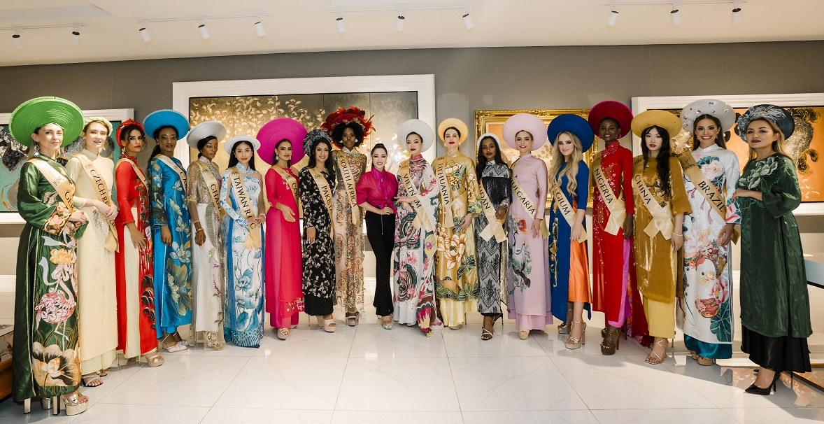 Đầu tháng 1/2024, các thí sinh của Miss Global 2023 đã tới Việt Nam và có một tuần trải nghiệm văn hóa, ẩm thực Việt. Hơn 80 người đẹp cùng diện áo dài của NTK Châu Loan trong buổi chụp hình glamshot tại TP.HCM