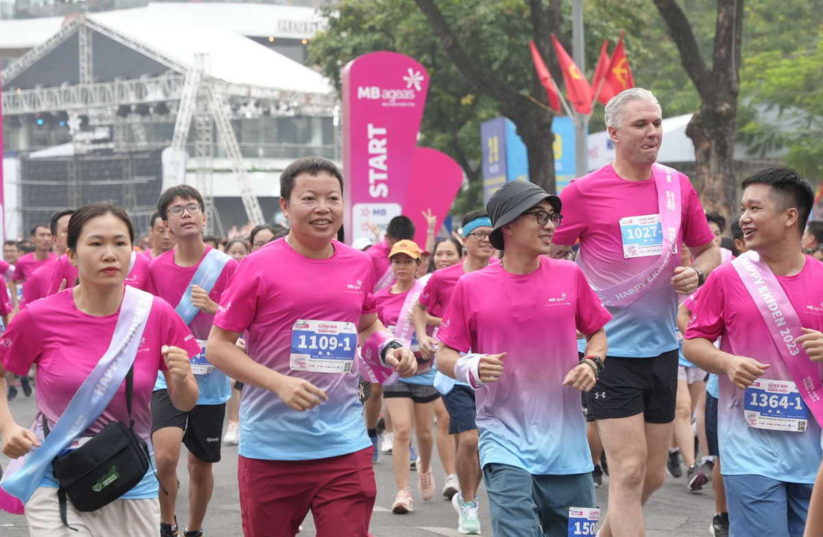 Sáng 20/8, 800 đội thi tham dự giải chạy MB Ageas Life Happy Ekiden 2023 tại bờ Hồ Hoàn Kiếm (Hà Nội). Đây là giải chạy bán chuyên dành cho các gia đình, tổ chức theo hình thức chạy tiếp sức (Ekiden). Mỗi đội gồm 4 thành viên, bắt buộc có 1 em nhỏ để tạo thành Happy Team. Qua 4 năm tổ chức, giải đã trở thành sân chơi gắn kết hạnh phúc, rèn luyện sức khỏe các thành viên trong gia đình.