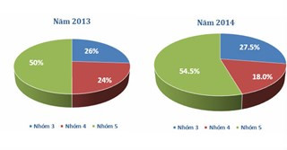 Về quy mô nợ xấu của 9 ngân hàng trong năm 2014, tổng số nợ xấu đã tăng 4,2%, từ 32.503 tỷ đồng lên 33.871 tỷ đồng.