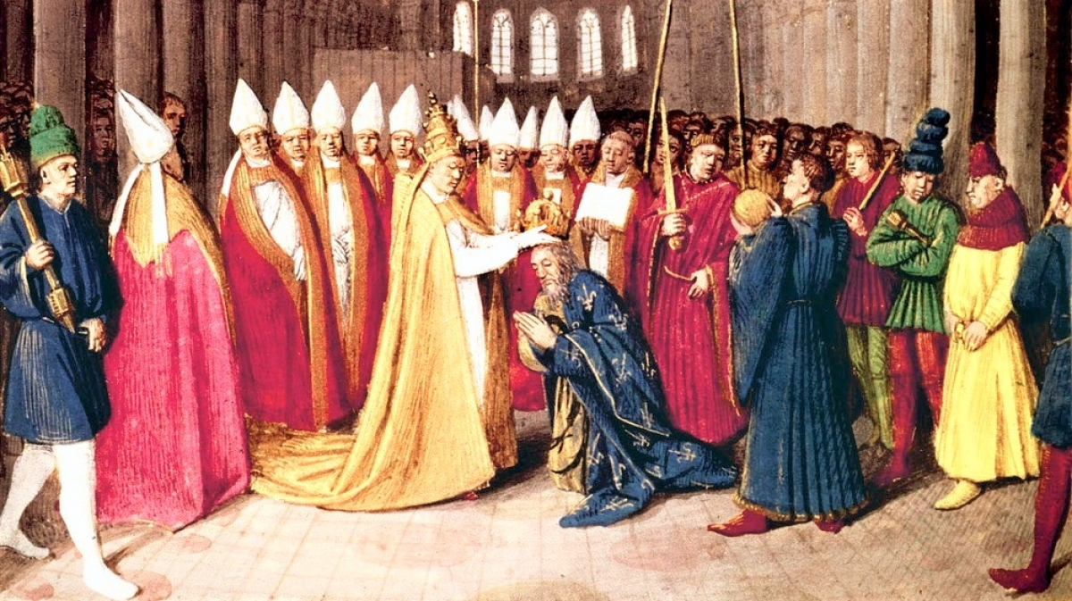 Vào tháng 11 năm 800, vua người Frank Charlemagne đến Rome để gặp Giáo hoàng Leo III. Sau khi Giáo hoàng Leo III tuyên bố bác bỏ một số cáo buộc chống lại ông, cả hai đã đến nhà thờ St. Peter's để tham dự thánh lễ Giáng sinh. Sau khi cầu nguyện, khi Charlemagne đứng dậy, Giáo hoàng Leo III đã đội vương miện lên đầu và phong ông làm Hoàng đế của La Mã Thần thánh. Lễ đăng quang này đã tạo ra Đế chế La Mã Thần thánh, kéo dài hơn một thiên niên kỷ cho đến năm 1806.