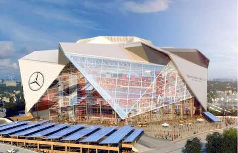| Sân vận động Atlanta Falcons với biểu tượng Mercedes-Benz quen thuộc |