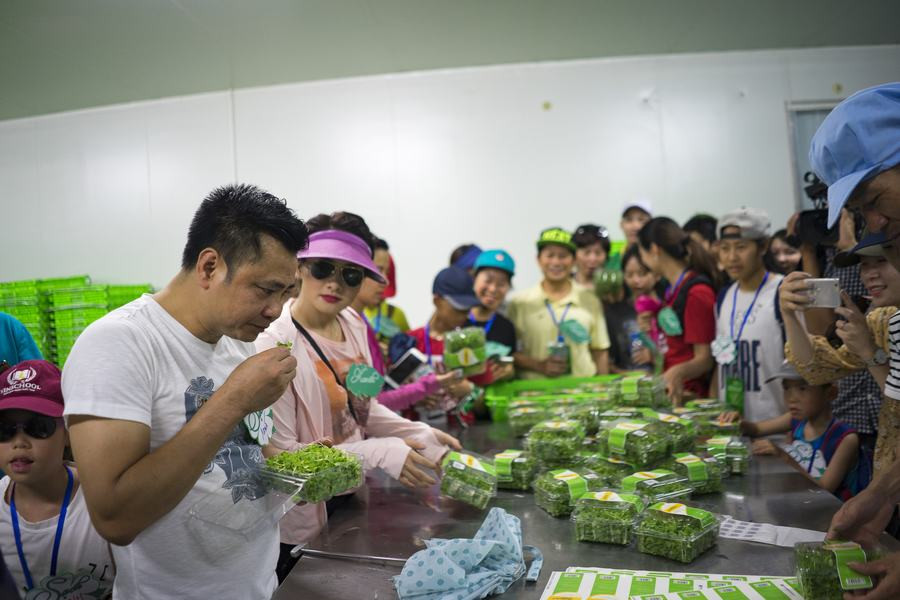 Được tận mắt chứng kiến cách sản xuất, Tự Long không ngần ngại ăn thử rau ngay khi vừa mới thu hoạch