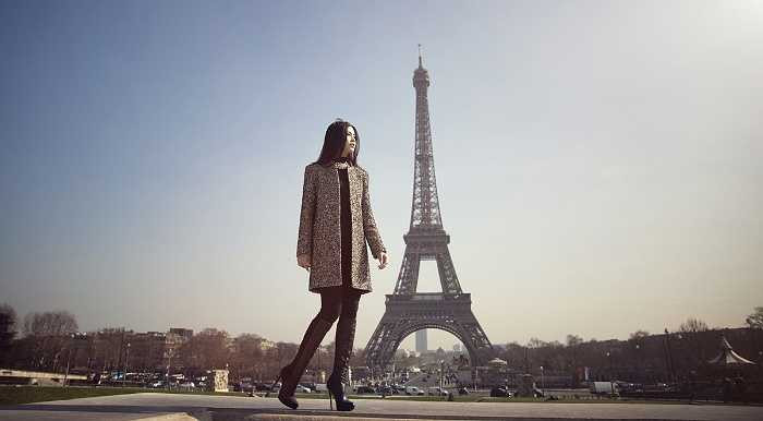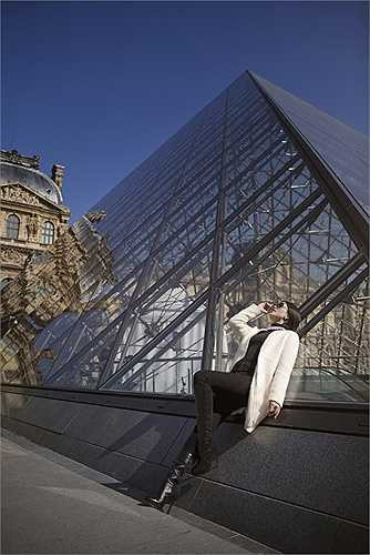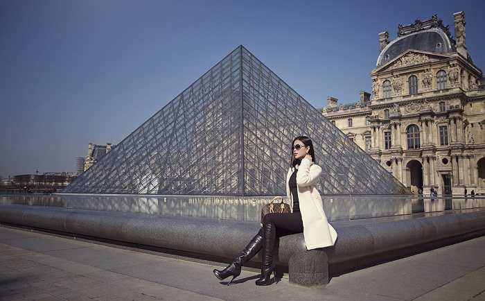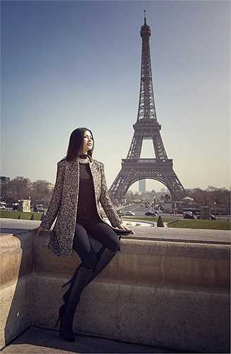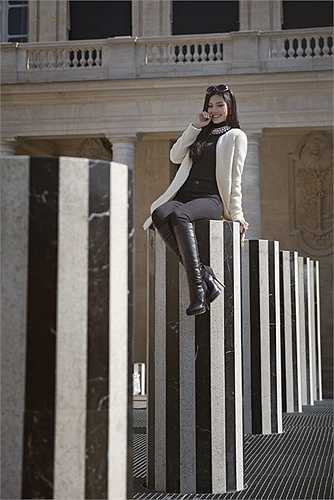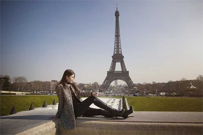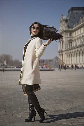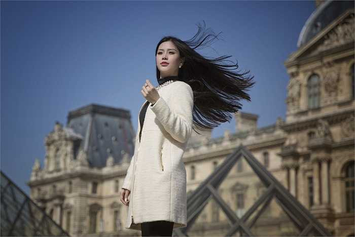 Á hậu diện trang phục thanh lịch quý phái, khoe dáng bên những thắng cảnh nổi tiếng của thủ đô Paris như bảo tàng Louvre, tháp Eiffel, cây tình yêu Pont des Arts...