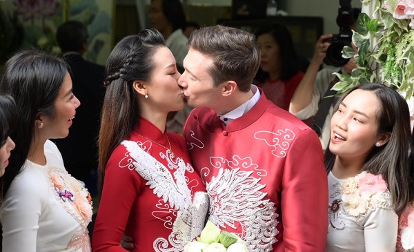 Chú rể cũng gửi lời cám ơn gia đình vợ đón tiếp nhà trai rất nồng hậu cũng như những tình cảm ấm áp mà anh nhận được khi về Việt Nam.
