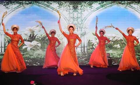 Đi cùng với trang phục, sân khấu biểu diễn cũng được bài trí sinh động tái hiện trước mắt khán giả không gian Tết cổ truyền Việt Nam với hình ảnh ấn tượng về những thiếu nữ duyên dáng, ngọt ngào uyển chuyển trong tà áo tứ thân bay bổng.