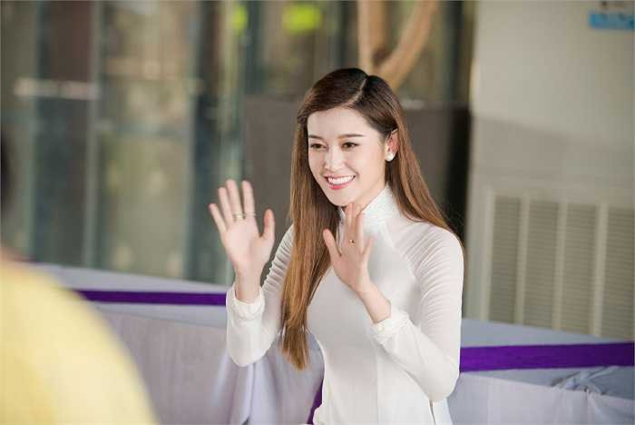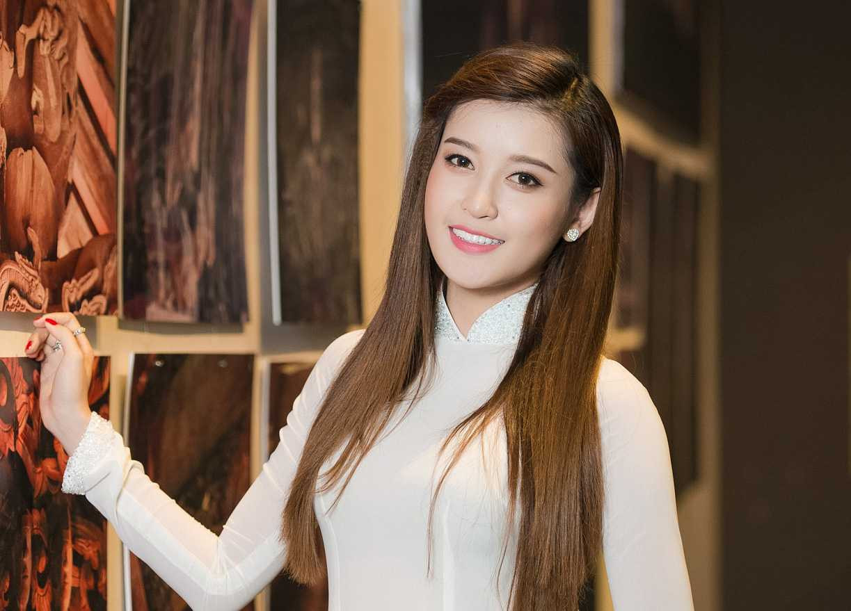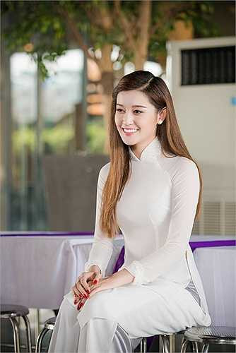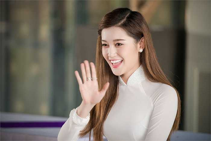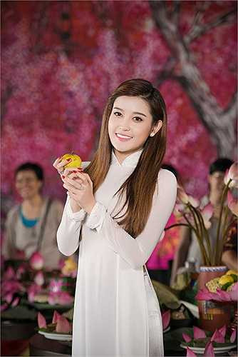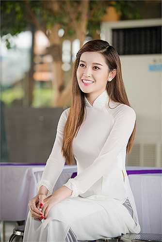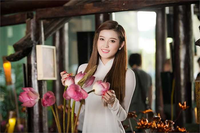 Diện tà áo dài trắng giản dị, nhưng Á hậu Huyền My vẫn nổi bật bởi nhan sắc quyến rũ.