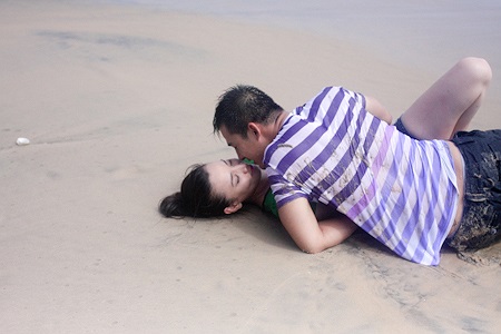 Cặp đôi này đã thực hiện rất nhiều cảnh hôn nhau nồng cháy trên bờ biển.