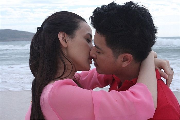 Trong cảnh quay mới nhất Trang Nhung lại hôn đắm đuối Hoàng Anh trên bãi biển .