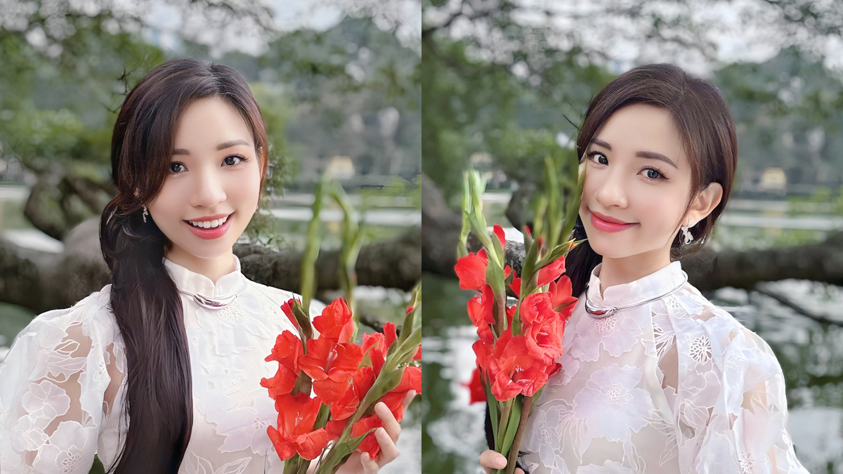 Trong bộ ảnh, Diễm Anh diện chiếc áo dài trắng với phom dáng mới lạ toát lên sự hiện đại, thời thượng nhưng vẫn giữ được nét thanh lịch.
