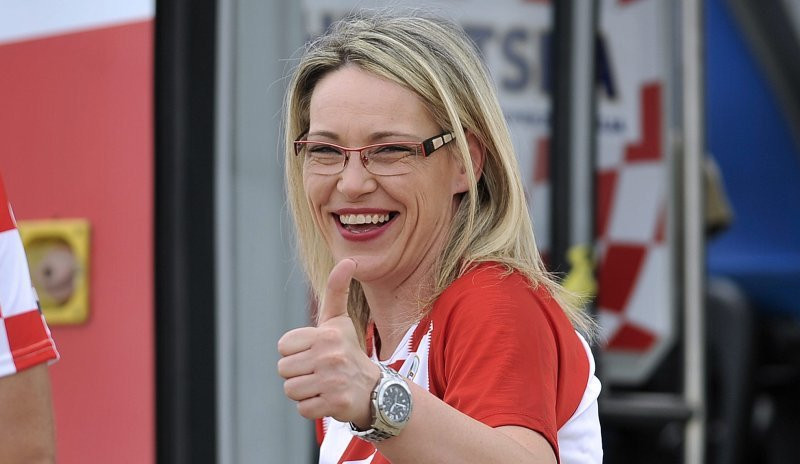Đi giữa biển người hò reo là điều không dễ. Chị Nikolina Ziljak phải tập trung cao độ để quan sát, điều khiển xe.