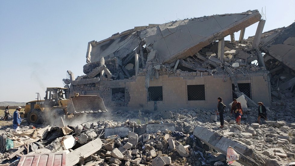 Đống đổ nát ở Yemen sau một đòn không kích từ liên quân do Ả-rập Xê-út dẫn đầu. (Ảnh: Reuters)