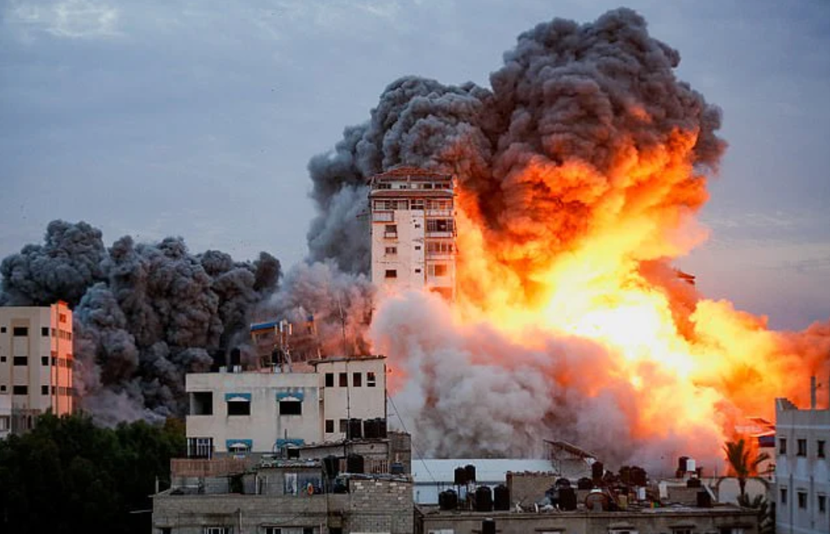 Khói bốc lên sau khi lực lượng Israel tấn công tòa nhà cao tầng ở Gaza. (Ảnh: Reuters)