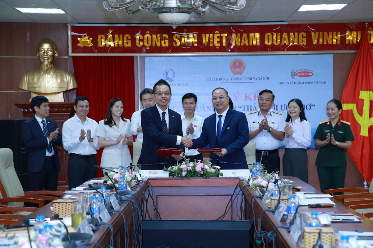 Đại diện Acecook Việt Nam và Quỹ Bảo trợ Trẻ em Việt Nam ký kết thỏa thuận hợp tác dự án “Thả lưới ước mơ".