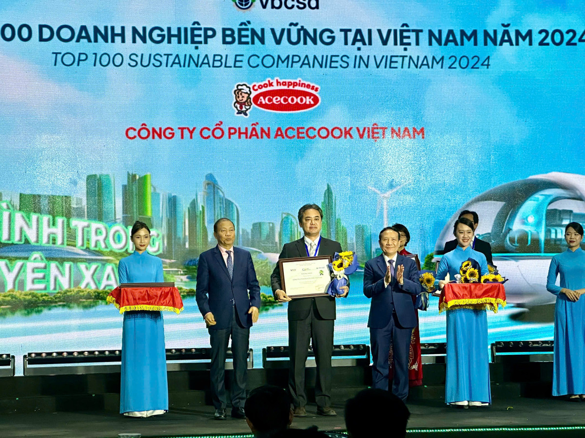 Acecook Việt Nam thăng hạng đột phá từ vị trí thứ 60 năm 2023 lên giữ vị trí thứ 13 tại bảng xếp hạng 2024, theo kết quả vinh danh trong Top 100 Doanh nghiệp Bền vững năm 2024 với chủ đề “Doanh nghiệp vươn mình trong Kỷ nguyên Xanh”, do Liên đoàn Thương mại và Công nghiệp Việt Nam (VCCI) phối hợp cùng Hội đồng Doanh nghiệp vì sự Phát triển bền vững Việt Nam (VBCSD-VCCI) tổ chức.