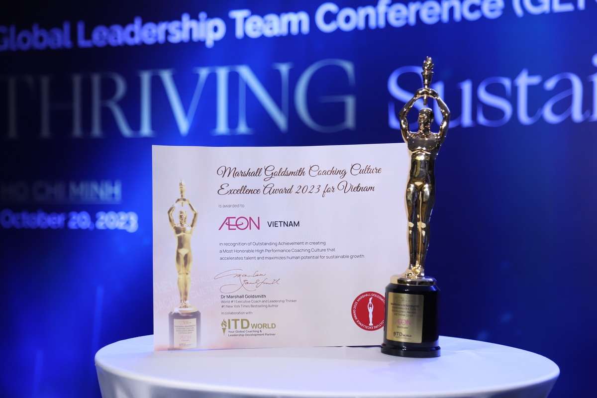 Tối 20/10, AEON Việt Nam được vinh danh tại Giải thưởng văn hóa khai vấn xuất sắc Marshall Goldsmith 2023.