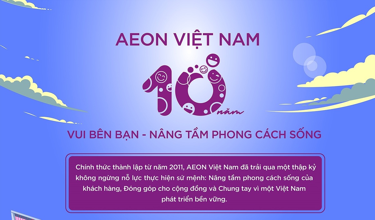 Sau 10 năm hiện diện tại Việt Nam, AEON Việt Nam phát triển mạnh mẽ, trở thành doanh nghiệp bán lẻ hàng đầu nâng tầm phong cách sống hàng triệu người tiêu dùng Việt.